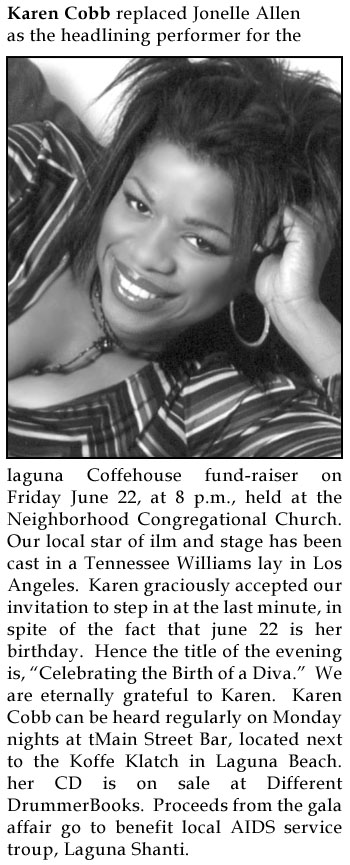 Karen Cobb headlines Laguna Coffeehouse fund-raiser