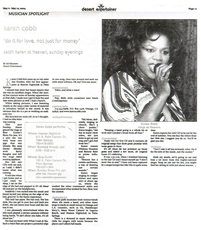 Karen Cobb Returns to Heaven (Desert Entertainer)