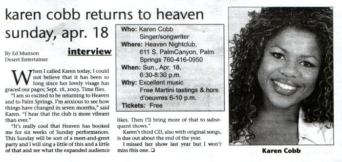 Karen Cobb Returns to Heaven (Desert Entertainer)